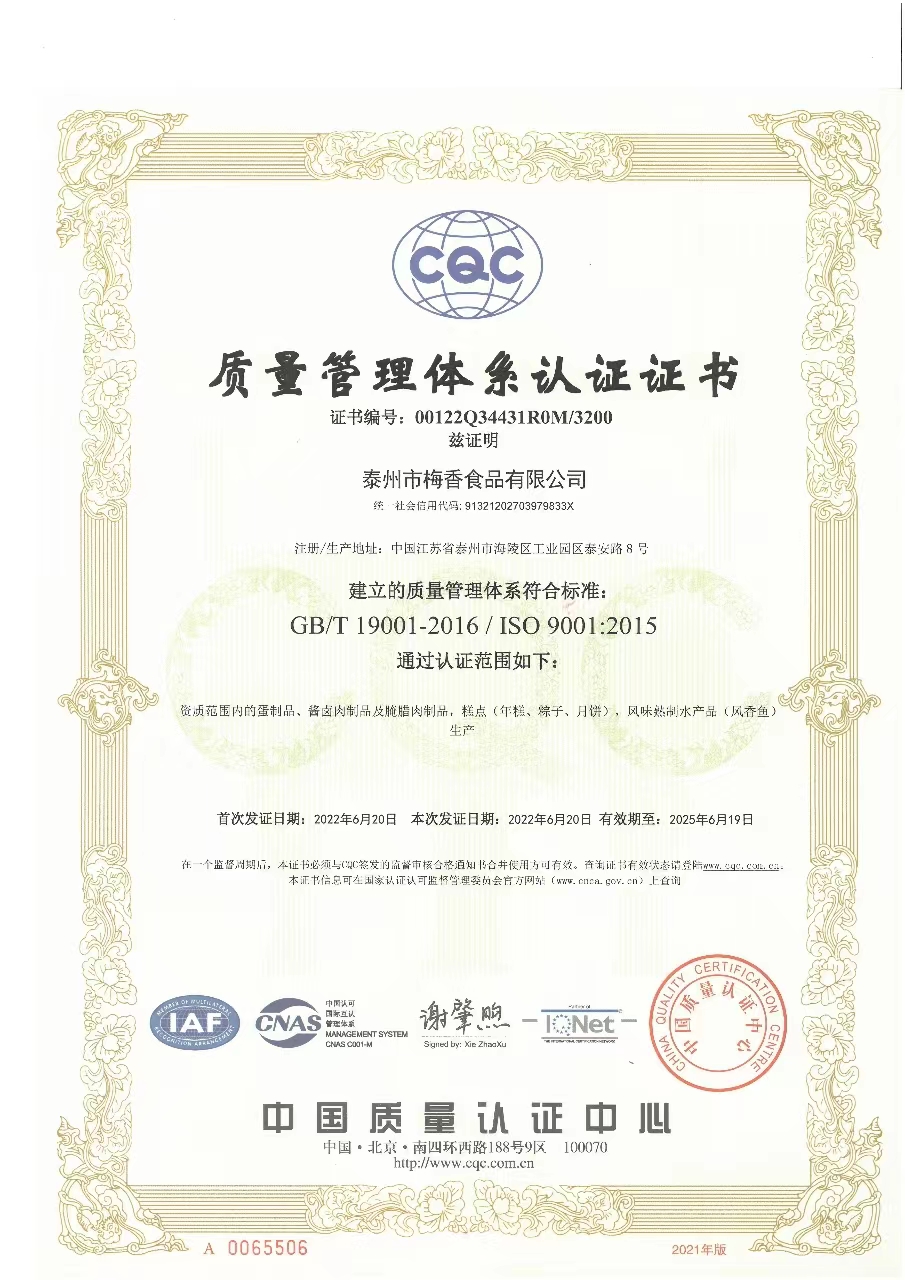 質(zhì)量管理體系認(rèn)證(2022年6月20日至2025年6月19日)